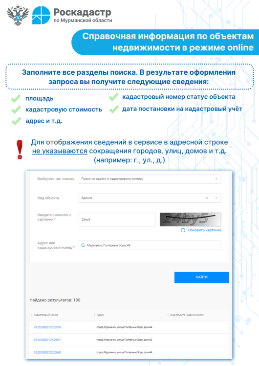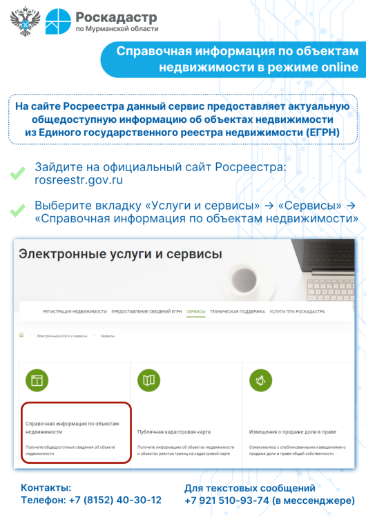 Региональный филиал ППК «Роскадастр» напоминает гражданам о возможности получения в режиме реального времени необходимой информации об объекте, воспользовавшись электронными сервисами Росреестра.