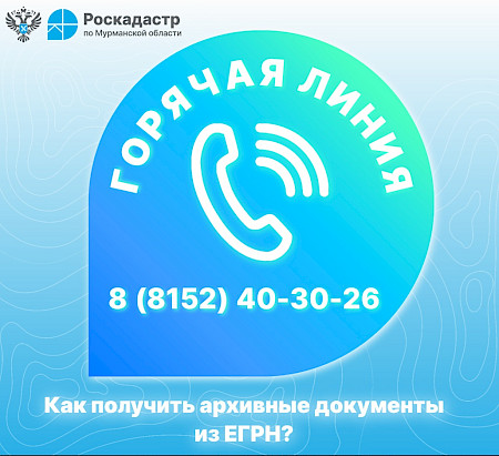 04 октября 2024 года с 10:00 до 12:00 пройдет горячая линия, посвященная вопросам получения копий документов из архива Роскадастра, а также невостребованных документов после оказания государственных услуг по регистрации прав и кадастрового учета.