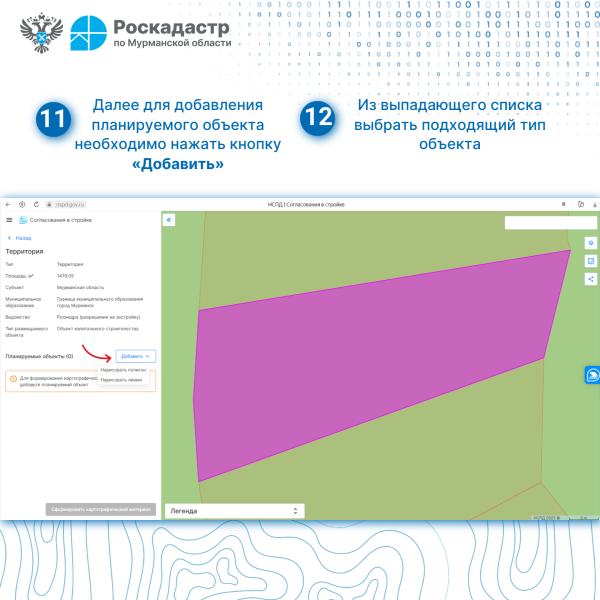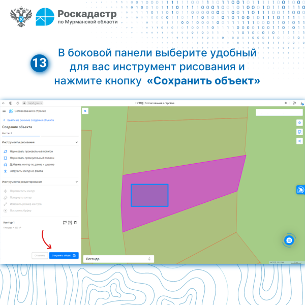 - при необходимости задать контур и параметры планируемого объекта капитального строительства;