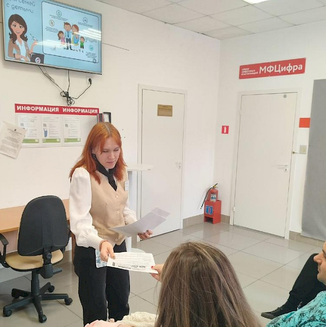 В ходе мероприятия специалист МФЦ рассказал о пособиях, льготах и услугах, которые могут получить граждане, относящиеся к данной категории заявителей, а также разъяснил порядок их оформления и вручил памятки и буклеты.