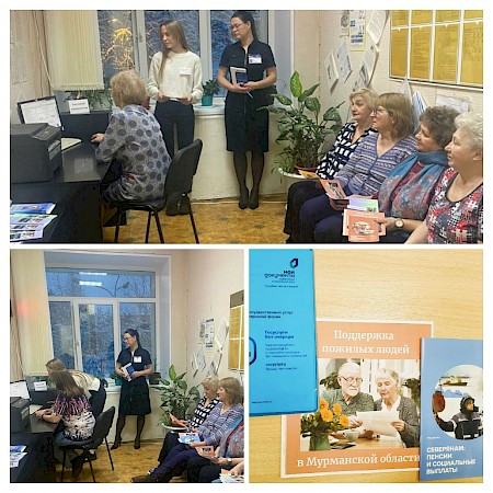 23 декабря 2022 года для жителей пожилого возраста г. Полярные Зори проведен практический семинар, посвященный вопросам подачи заявлений на предоставление государственных социально значимых услуг через портал Госуслуг. Семинар организован ГОКУ «Кандалакшский межрайонный центр социальной поддержки населения», в котором, в том числе, принял участие специалист Центра цифровых компетенций отделения по г. Полярные Зори.