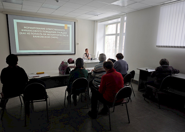Специалисты ЦЦК рассказали о признаках и классификации финансовых мошенничеств, о видах нарушений и недобросовестных практик финансовых организаций по отношению к потребителям финансовых услуг, привели практические примеры финансовых мошенничеств и по окончании учебных занятий ответили на интересующие слушателей вопросы.