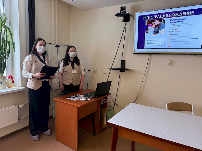 18 марта 2025 года сотрудники отделения ГОБУ «МФЦ МО» по Ленинскому административному округу г. Мурманска провели для пациентов Мурманского областного перинатального центра выездной информационный семинар, посвященный государственным и муниципальным услугам, которые могут получить молодые семьи в рамках жизненной ситуации «Рождение ребенка».