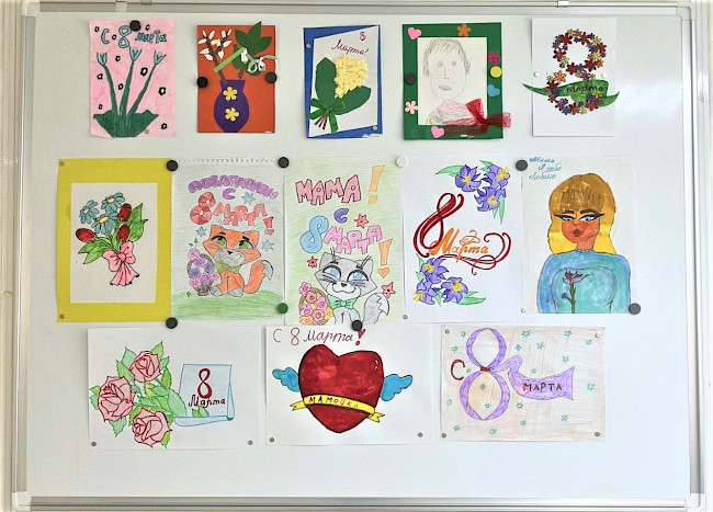 Рисунки и аппликаций детей сотрудников представлены на выставке в отделении ЗАТО Александровск в г. Полярный. Вооружившись карандашами и красками, цветной бумагой ребята проявили свои таланты, фантазию и творчество. Россыпь весенних цветов и портреты мам-красавиц можно увидеть на выставке.