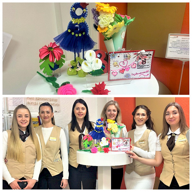 Дети сотрудников отделения ЗАТО Североморск приготовили настоящий весенний подарок для своих мам – яркие, солнечные, неповторимые поделки. Творческие работы ребят - праздничные букеты цветов, веселые поделки и поздравительные открытки представлены на выставке в отделении.