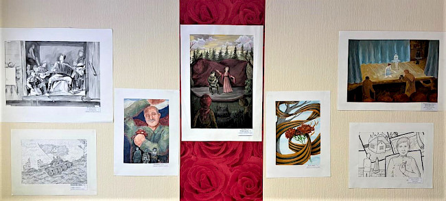 В преддверии Дня Великой Победы в отделении ГОБУ «МФЦ МО» по Ловозерскому району организована тематическая выставка творческих работ учащихся муниципального бюджетного учреждения дополнительного образования «Школа искусств» пгт. Ревда.